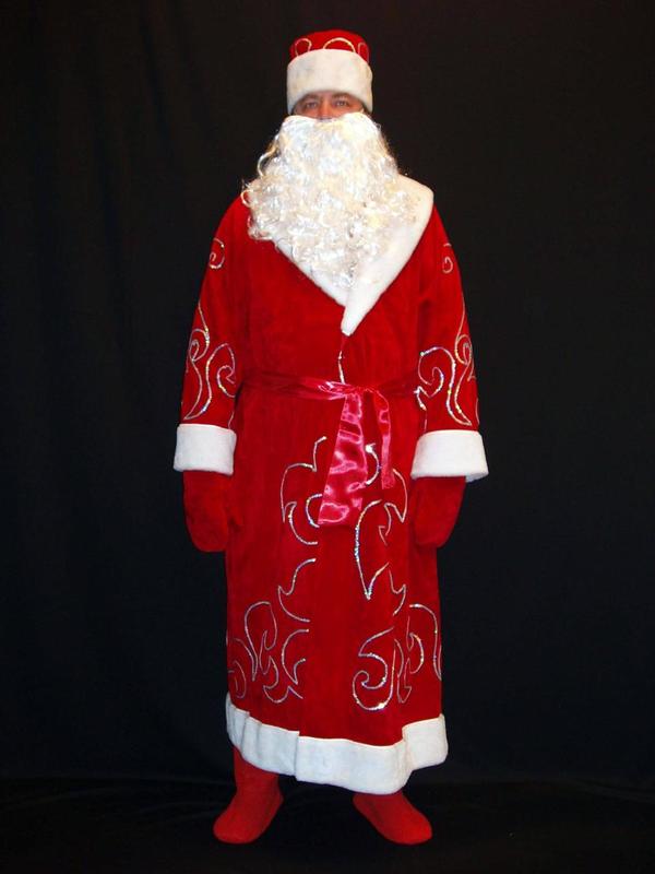 Костюм Св.Николая/Д.Мороза СЛАВЯНСКИЙ-2 р-р 48-54 Код 107622 Карнавальный комплект-костюм Деда Мороза красно-бордовый «СЛАВЯНСКИЙ-2» отшивается в одном универсальном размере – 48-54 на рост 170-190 см В данный комплект костюма Деда Мороза ВХОДЯТ: 1. Шуба Деда Мороза, выполненная из настоящего плотного высококачественного бархата насыщенного красно-бордового цвета на красной шёлковой подкладке, роскошным шалевым воротником (отбеленный искусственный мех типа «мутон»). Шуба оторочена тем же мехом по подолу и по рукавам и богато украшена зимними узорами из переливающейся голографической пайеточной ленты-тесьмы серебристого цвета. 2. Шапка сложного покроя, выполненная из основной ткани, на белой простеганной подкладке с синтепоновой прокладкой. Шапка отороченна полосой меха типа «мутон» (ширина 11 см) и украшена зимними узорами из переливающейся голографической пайеточной ленты-тесьмы серебристого цвета. 3. Пояс-кушак выполнен из красного блестящего атласа 4. Рукавицы Деда Мороза, выполненные из основной ткани – бархата на красной шёлковой подкладке. 5. Добротная среднеразмерная реалистичная борода «ВЛАСТНАЯ» (40-45 см, 65-75 гр.). Код 02719. В данный комплект костюма Деда Мороза НЕ ВХОДЯТ (можно приобрести на нашем сайте дополнительно): - Парик Деда Мороза (можно выбрать по размеру, длине, пышности, качеству волоса и цене парик Деда Мороза с учётом вашего вкуса и потребностей). - Мешок для подарков Деда Мороза (можно выбрать любой по размеру, ткани, цвету и цветовых оттенков, с декором и без, с завязками простыми или со шнуром и меховыми опушками ). - Посох Деда Мороза (можно выбрать любой по размеру, длине, типу верхушки, цвету и материалу изготовления, конструкции (сборный или цельный) и цене посох Деда Мороза с учётом вашего вкуса и потребностей). - Сапоги или валенки Деда Мороза (можно купить дополнительно на нашем сайте) различные по технологии изготовления, материалу, высоте голенища, цене - сапоги или валенки Деда Мороза. - Брюки Деда Мороза(можно выбрать по размеру, ткани, цвету). - Микрофон портативный с усилителем и динамиком (при потребности в усилении голоса и при этом с сохранением свободных рук настоятельно рекомендуем к приобретению)