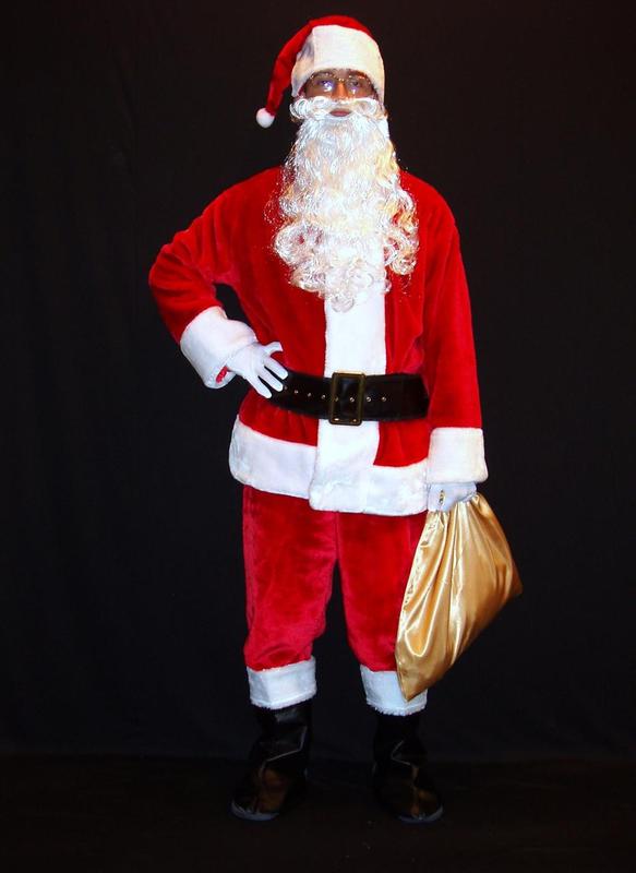 ## Костюм Санта Клауса УЦЕНКА! 10 предметов ЭФФЕКТНЫЙ-2 р-р М (48-50). Код 08379 Внимание! ЭТОТ ТОВАР УЦЕНЕН! Причина уценки: Розовые пятна на белом мехе костюма, которые образовались из-за трения красной основной ткани о белый мех. Вы можете увидеть эти дефекты на последних фотках к данному товару. Карнавальный комплект-костюм Санта Клауса «ЭФФЕКТНЫЙ-2» имеется в наличии в размере М (48-50). В данный комплект костюма Санта Клауса ВХОДЯТ: 1. Куртка-жакет Санта Клауса, выполненная из дорогосоящего мягкого шелковистого и «переливчатого» плюша ярко-красного цвета (с переливом за счёт специфики плюша - в тёмно-красный цвет). Куртка Санты оторочена белоснежным мехом типа «мутон» по линии подола, рукавам и по линии застежки. Воротник типа «стойка» также выполнена их меха. Застежка выполнена «в потай» и снабжена удобной современной застежкой типа «молния», а также - дополнительно - двумя фиксирующими кнопками-замками сверху (на вороте - воротнике) и снизу шубы-жакета 2. Штаны Санта Клауса, выполненные из того же мягкого шелковистого плюша красного цвета, на резинке 3. Чёрный «фирменный» регулируемый ремень Санта Клауса, выполненный из эффектного кожзаменителя, с металлическими золотистыми отверстиями для регулировки и с эффектной золотой пряжкой 4. Сапоги (бахилы) Санта Клауса, выполненные из эффектного кожзаменителя (универсальный регулируемый размер), надеваемые поверх любой обуви, на которой закрепляются специальными резинками, входящими в комплект накладных бахилл. 5. Традиционная большая шапка-колпак Санта Клауса, выполненная из мягкого шелковистого плюша красного цвета, отороченная мехом типа «мутон», с пушистым меховым помпоном, венчающим конус шапки. 6. Знаменитые трикотажные стретчевые хлопчатобумажные перчатки Санта Клауса белого цвета. 7. Потрясающий мешок для подарков Санта Клауса размером 45х45 см, выполненный из блестящего атласа «чисто-золотого» цвета. 8. Классные каноничные очки Санта Клауса с реальными стеклами (не пластик!), в надёжной металлической золотистой оправе с подпружиненными дужками (очки не бутафорские, а настоящие!) 9. Чехол-футляр для очков Санта Клауса из прозрачного полиэстерола, с застежкой и с безопасной защитной пластиковой арматурой, предохраняющей очки при переноске. 10. Добротная среднеразмерная реалистичная борода «ВЛАСТНАЯ» (40-45 см, 65-75 гр.). Код 02719. (кликнув по названию бороды Вы можете более подробно ознакомится с качествами этого аксессуара и посмотреть дополнительные фото). В данный комплект костюма Санта Клауса НЕ ВХОДЯТ (можно приобрести на нашем сайте дополнительно): - Парик Санта Клауса (можно выбрать по размеру, длине, пышности, качеству волоса и цене парик Санта Клауса с учётом вашего вкуса и потребностей). - Микрофон портативный с усилителем и динамиком