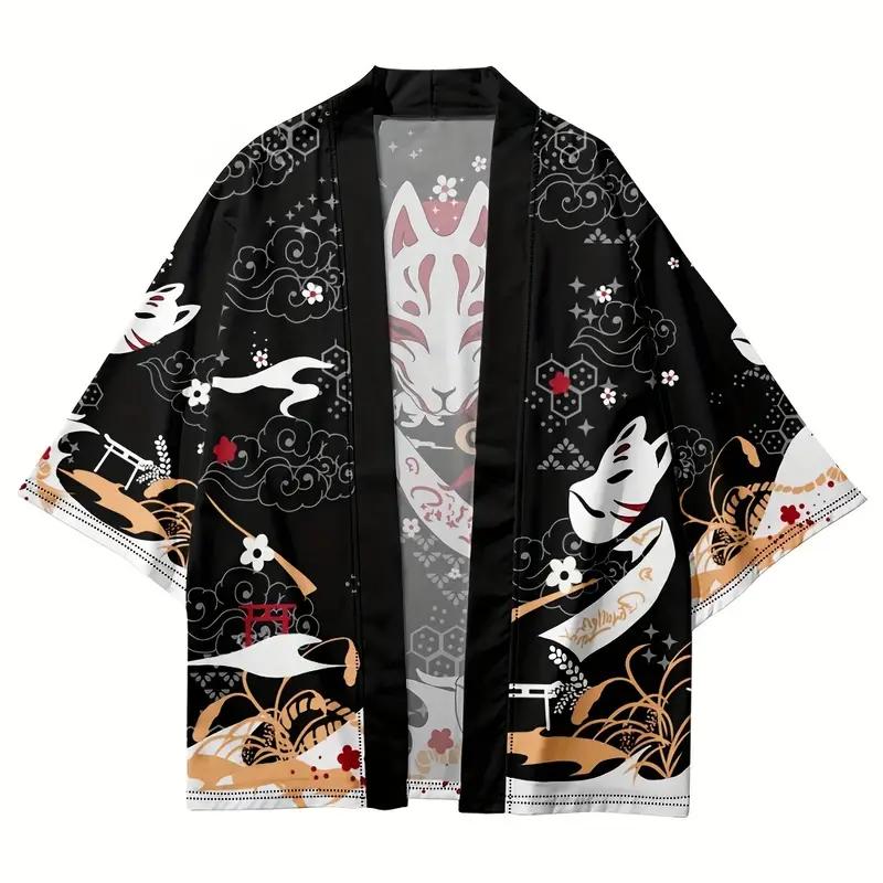🖤 Кимоно в японском стиле Материал: легкая ткань (приемная на ощупь, комфортная для лета) Цвет: черный с ярким принтом (лиса-котсущая, волны, цветы, облака) Фасон: свободный крой, рукав 3/4, без застежки Размер: oversize (подойдет на S-M-L) Состояние: отличный ✅ Стильный вариант для повседневных образов, фотосессий, вечеринок или фестивалей. Легко комбинируется с футболкой, топом или можно носить самостоятельно. Замеры по запросу одето на рост 185 см 80 кг по бирке размер М одето на параметры плечи 39 грудь 103 талия 88 бедра 101