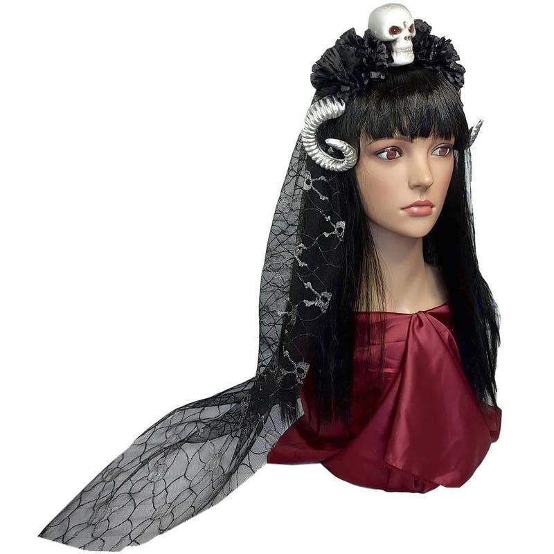 Украшение на голову Хэллоуин с рогами Лугата 10239 легко можно создать оригинальный образ. Ободок с цветами и черепом в стиле Santa Muerte на Halloween, эффектно дополнит любой костюм нечести. Эффектное сочетание черных хризантем и белого черепа с маленькими золотыми рогами демона дополненое черной фатой из гипюра, создает загадочный образ Хельи Королевы Мертвых. Предлагаем Вам большой выбор украшений на голову для составления неповторимого образа на День Мертвых в интернет - магазине Карнавал Приколов. Купив Украшение на голову Хэллоуин Вы получаете не только качественный товар, а и 100% позитивных впечатлений от приобретения. Помимо аксессуара для волос, конечно, желателен оригинальный костюм, а также специфический гримм, который Вы можете подобрать на нашем сайте.
