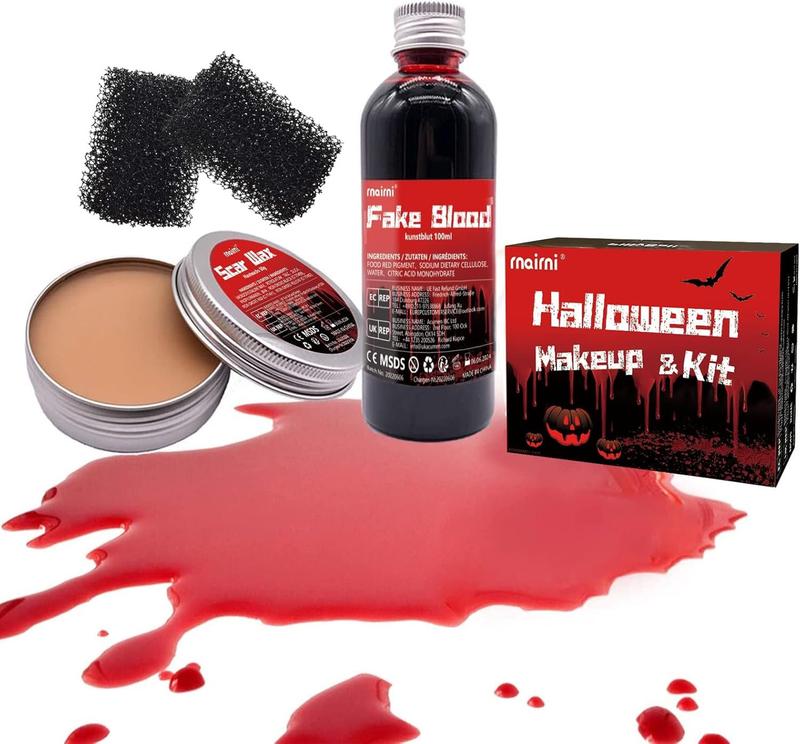 Набор Rnairni предназначен для тематических вечеринок, костюмированных вечеринок, Дня смеха, Хэллоуина, карнавалов, домов с привидениями, кладбищ, реквизита для фильмов, праздничных мероприятий или создания спецэффектов. С набором для макияжа Rnairni Вы сможете добиться жутких эффектов и реалистичного макияжа. Например, имитировать ожоги, обширные раны, порезы, шрамы и т. д. Комплектация: - воск для макияжа шрамов 50 грамм, - искусственная кровь 100 мл, - 2 губки. Шпатель для нанесения макияжа в комплекте отсутствует. Моделирующий воск подходит для создания различных эффектов в макияже, например, для скрытия бровей, ран, царапин и т. д. С помощью моделирующего воска можно создавать различные раны. Искусственная кровь сделает Ваши раны более реалистичными и кровавыми. Губка для макияжа -- лучший инструмент для работы с воском и искусственной кровью.