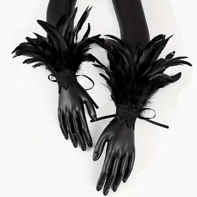 Браслеты на шнуровке с кружевом и перьями чёрные , высота 21 см Описание товара: Элегантные браслеты на шнуровке с кружевом и декоративными перьями -- стильный аксессуар в готическом и винтажном стиле. Чёрный цвет добавляет выразительности, а высота изделия 21 см делает их заметным элементом образа. Характеристики: - Тип: браслеты на шнуровке - Материал: кружево с декоративными перьями - Цвет: чёрный - Высота изделия: 21 см - Стиль: готический, винтажный, панк - Назначение: вечеринки, Хэллоуин, тематические мероприятия, фотосессии, карнавалы Преимущества: - Уникальный дизайн с кружевом и перьями - Удобная шнуровка для регулировки посадки - Выразительный аксессуар для праздничных и готических образов - Лёгкие и комфортные в использовании