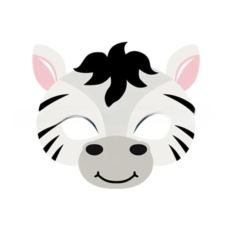 Детская маска зебра из картона 16 на 16 см черно-белый