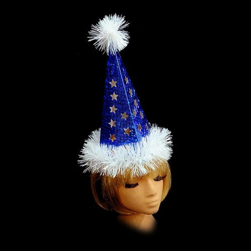 Новогодний карнавальный аксессуар держится на голове с помощью резинки, которая идёт в комплекте. Материал колпака- Картон Высота - 34 см, диаметр - 19 см.