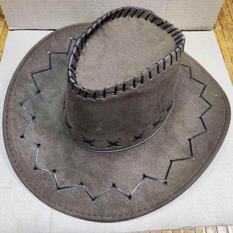 Ковбой. Шляпа мужская бежевая замшевая. Иммитация 081279/ 08170 Шляпа Ковбоя из замши бежевого цвета – это стильный и практичный аксессуар, который идеально подойдет для создания яркого и запоминающегося образа настоящего ковбоя. Такой элемент костюма способен подчеркнуть мужественность, уверенность и придаст вашему наряду завершённый вид. Материал шляпы имитирует натуральную замшу, что делает изделие визуально привлекательным и приятным на ощупь. Декоративная отделка выполнена аккуратно, шнур проходит по краю полей и тулее шляпы, создавая эффектный контур, который гармонично сочетается с общим стилем аксессуара. Благодаря мягкой, но плотной форме, шляпа отлично держится на голове и не теряет форму даже при активном использовании. Особенности: - Универсальный размер подходит как мужчинам, так и женщинам (унисекс). - Удобный регулируемый шнур обеспечивает надёжную фиксацию на голове, предотвращая спадание. - Легкий вес делает шляпу комфортной для длительного ношения. - Подходит для тематических вечеринок, фотосессий, театральных постановок или как часть костюма ковбоя. Бежевая замшевая шляпа поможет вам легко создать атмосферу дикого запада, добавить образу дерзости и шарма. Она станет удачным завершением костюма, будь то праздник, фестиваль или косплей.