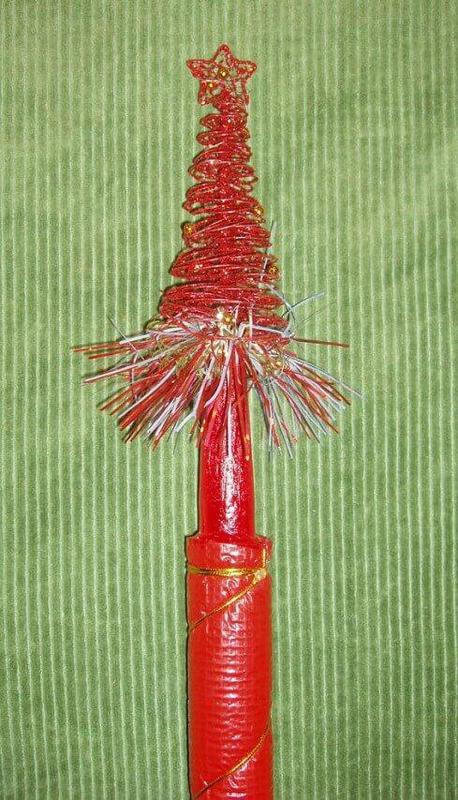 Посох св. николая/деда мороза деревянный цельный - красная ёлочка