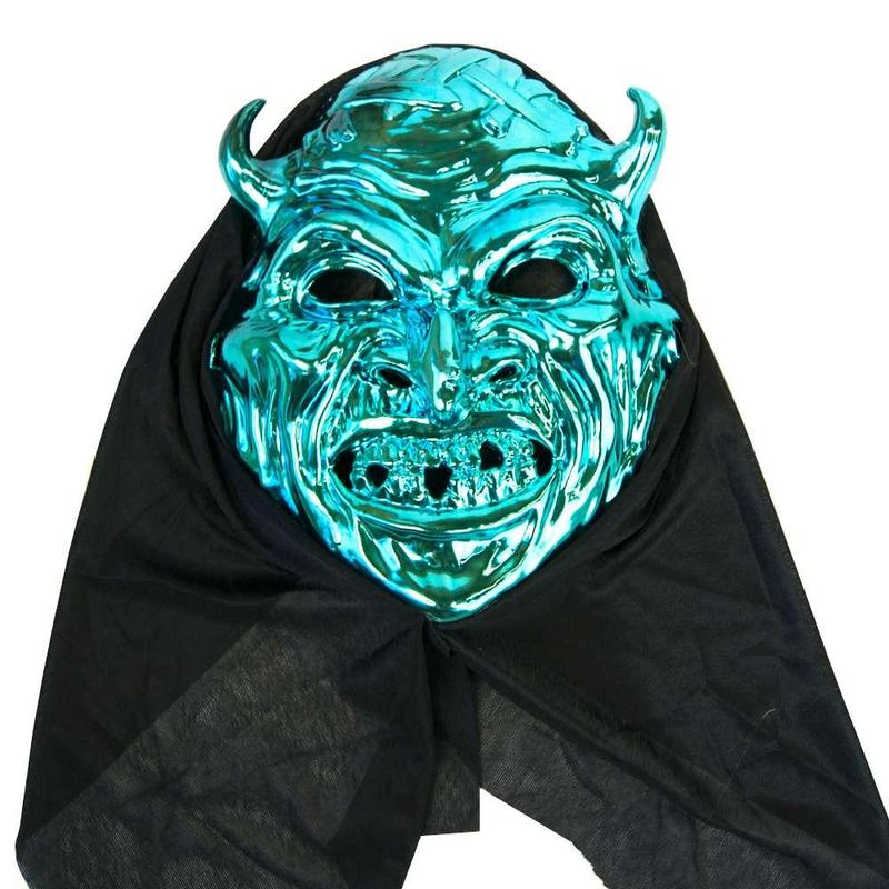 Маска с капюшоном Дьявол (голубой) 700662/ KM1-1352 Размеры: 28х23х7см Цвет: голубой металик, черный Материал: пластик, текстиль Производитель: Китай Маска с капюшоном Дьявол (Halloween Scary Horror mask) изготовлена из пластика. Маска с черными текстильным капюшоном и пластиковой маской с метализированым зеркальным покрытием закрывает все лицо. Размер изделия : универсальный. Маска для вечеринки фиксируется за счет капюшона на голове. Карнавальные маски принесут изюминку в образ вашего персонажа на тематической вечеринке, карнавале или маскараде. Многообразие образов, безусловно, облегчит Ваш поиск оригинального образа.
