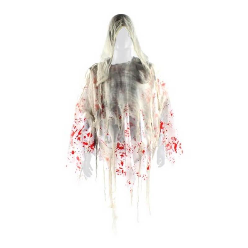 Балахон Зомби 504453/ 19-957 Карнавальная накидка с капюшоном, которая одевается через голову для создания костюма на Хэллоуин: приведение, призрак, мумия, зомби. Размен - M-L. Высота - 80 см, ширина - 85 см.