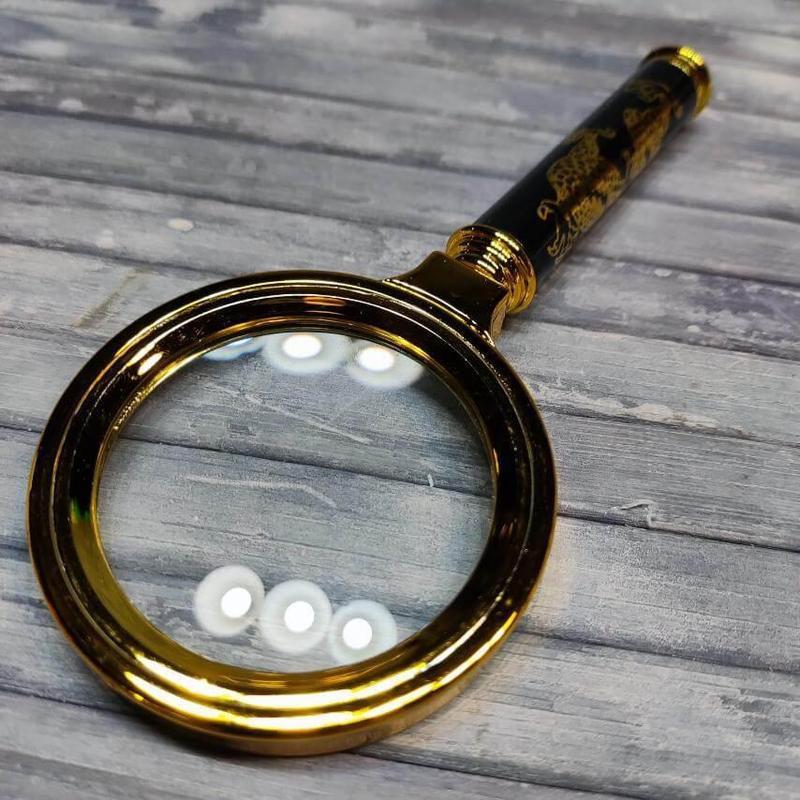 Лупа шерлока холмса ретро з декором ручці х6 кратність, справжня 70 мм