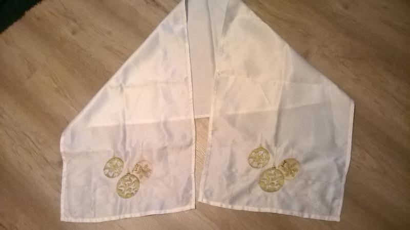 Шикарная новогодняя салфеточка-рушничек с золотыми шариками, новый Размер 39 х 148см. Вышлю.