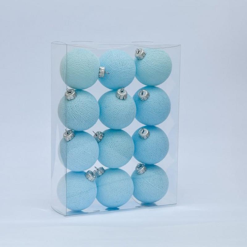 Набор ёлочных игрушек из ниточных шариков 6,5 см, 12 шт голубой