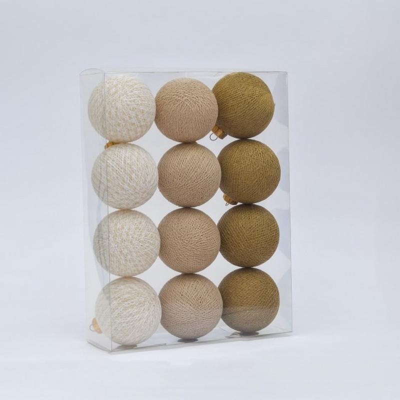 Набор ёлочных игрушек из ниточных шариков 6,5 см, 12 шт капучино