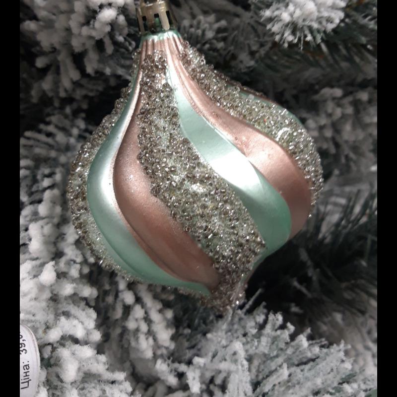 Очень красивая ёлочная игрушка выполнена в очень нежном сочетании цветов. Материал - пластик.