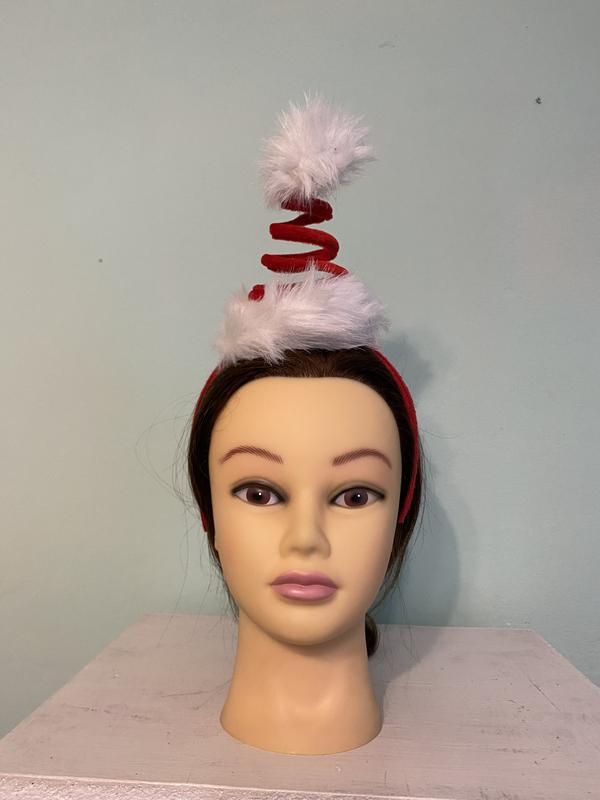 Начинаю новогоднюю коллекцию, чтобы вы успели приобрести, потому что зимой обещают отсутствие света. Обруч новогодний с шляпкой в виде спирали, цвета красный и белый.