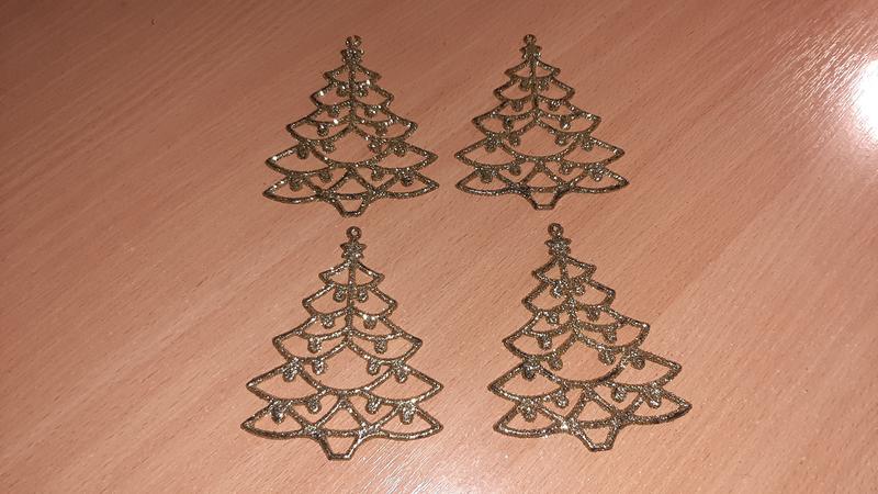 Уважно читайте умови пересилки! Пересилка товару укрпоштою на суму від 150 гривень з Оплатою на карту. Безпечною угодою пересилаю товар на суму від 300 гривень. На пересувні пункти безпечною оплатою не пересилаю, тільки повна оплата на карту. Пересилка товару новою поштою від 200 гривень, оплата тільки на карту. Перед будь якою покупкою, будь якого товару писати продавцю для уточнення Прикраса Ялинка для декору, або як прикраса на ялинку. Колір золотистий. Виготовлені з пластику і прикрашені гліттером. Кожна з них має розміри 10,5х 8,5х 0,4см Ціна вказана за одну ялинку