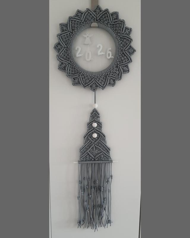 "Розовый венок с елкой в скандинавском стиле" размер:90×30см Материал: шнур полиамидный, бусины и цифры деревянные.