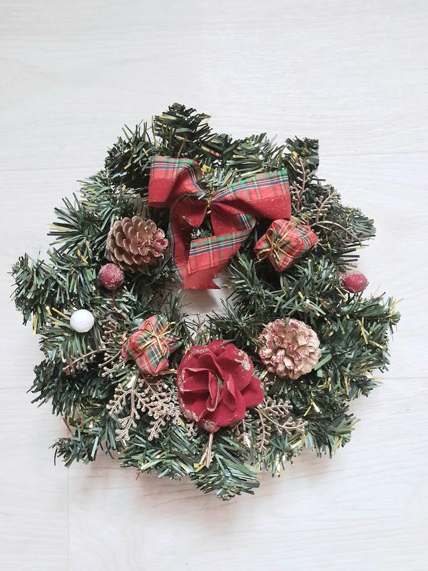 рождественский венчик искусственная елка, украшенная декором можно вешать на входную дверь