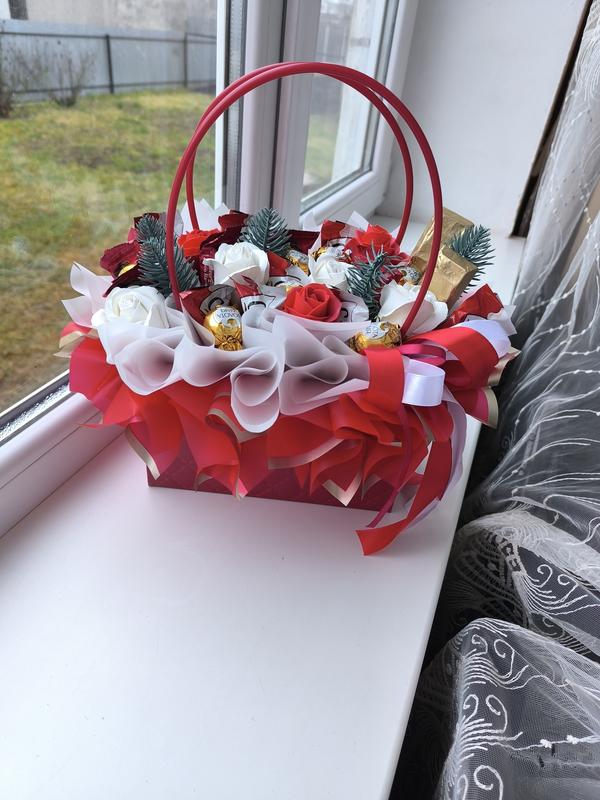корзинка новогодняя с сладостями и мыльными цветами предлагаю по заказу разные переходите в инсталграм на рабочую страницу @******************