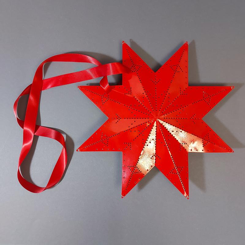 Рождественская звезда-подвес / Норвегия / винтаж 1990-х годов Материал: металл, красная краска, шелковая лента Размер: 30,5*4см, длина подвеса с лентой - 70 см Состояние: очень красивое, есть незначительные следы времени Назначение: праздничное декорирование жилья или дома (комнаты,уличной террасы),кафе; подвес на оконный карниз, дверь или на стену; рождественский подарок Цена: 300 грн.