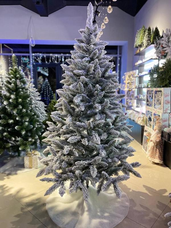 Качественная,сертифицирована елочка изготовлена из специальной пленки ПВХ и затем заснеженная. Доступна в размерах: 1.8 м 3100 грн 2.1 м 3900 грн 2.3 м 4300 грн Металлическая подставка в комплекте, не имеет лишнего запаха, не вызывает аллергии, не горит, литые веточки + вставки ПВХ, не сыпется.