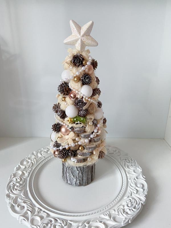Наконец-то я ее сделала елку. Делала круглогодично. Делала в прошлом году. Но из-за блективов я так и не доделала. И вот она появилась в одном экземпляре. Сделана из природных материалов, блестящих новогодних шаров, бархатистых бантиков, гирлянды из жемчужинок, бусинок, декоративных ягодок и машинки жука. И украшает звездочка. Размер елочки 40х14 см