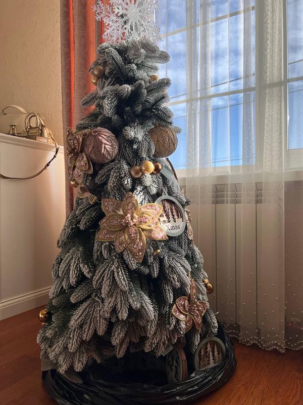 Неймовірно гарна ялинка Прикрашена багатьма різними іграшками Та квітами Все з бірками ( кожна іграшка на ціннику +-200грн) Віддаю разом все
