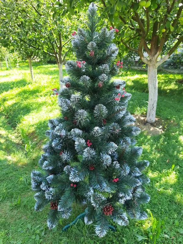 Елка Кармен с шишками и калиной 1.50м - На каждой веточке есть блестящая натуральная шишка или красные жемчужины (калина). Что добавляет елке еще большей изысканности. - Елка изготовлена из пленки ПВХ, имеет диаметр веточки 80мм. Край веточки обработанный прессом и белым инеем, имеет коническую форму. - Не вызывает аллергии. БЕЗ запаха. Ель создана из экологически чистого, первоклассного сырья. Безопасна для детей и животных. Подтверждено сертификатом качества. - Материал елки не поддерживает горения. - Елка упаковывается в коробку - К ели прилагается инструкция по установке и хранению. - Подставка входит в комплект. - Диаметр нижнего яруса: 100см. - Количество рядов: 10. - Количество ветвей: 260шт. - Вес: 4.4 кг. - Елка состоит из двох частей. - Иголки НЕ осыпаются. - Хранить в сложенном виде в вертикальном положении.
