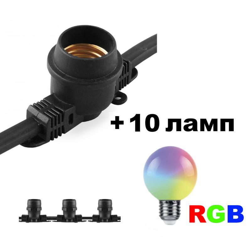 Уличная гирлянда с лампами белт-лайт cl50-8 + 10шт feron lb-378 g60 230v 1w e27 rgb матова...