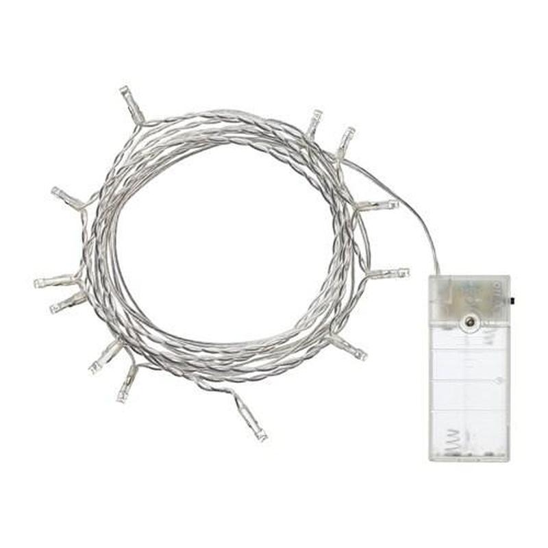 Гирлянда IKEA LEDFYR 304.210.23 Светодиодная гирлянда, 12 ламп, для помещений, на батарейках серебро Материалы Отсек батареи: Пластмасса АБС Изоляция: Поликарбонат Батарейки продаются раздельно; нужно 2 шт. А.А. Только для использования в помещении. Цвет света: теплый белый (2700 Кельвин). Срок службы светодиодов - около 25 тысяч. часов. Длина кабеля между лампами: 15 см. Мощность: 0.3 Ватт Общая длина: 2.1 м