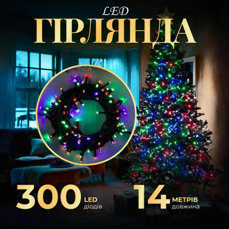 Гирлянда нить 300 led длина 14 метров, мультиколор,идеальный элемент декора