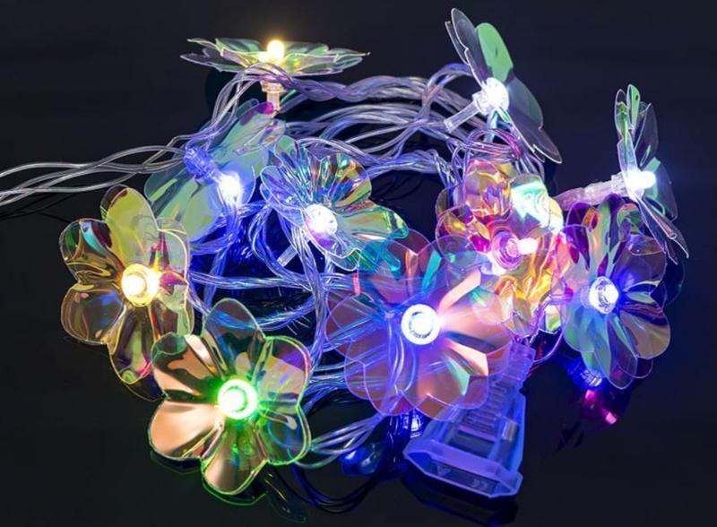 Гирлянда электрическая "Цветок" LED цветная Количество диодов-10. Цвет провода – прозрачный, с возможностью продления цепи. Питание – 220V. Для использования внутри помещений. Длина: 3 м