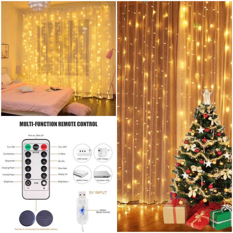 При питании от USB-порта вы можете избавиться от ограничений обычного источника питания. Размер: 3 м (ширина) x 1 м (высота) 8 режимов освещения: комбинированный, волновой, последовательный, замедленный, погоня/вспышка, медленное затухание, мерцание/вспышка, стабильный. Ручное управление или беспроводной пульт дистанционного управления: простой в использовании пульт дистанционного управления с 13 кнопками. Медная проволока гибкая, ее можно согнуть в любую форму или обмотать чем угодно, например, венками, деревьями, цветами, свадьбами с букетами.