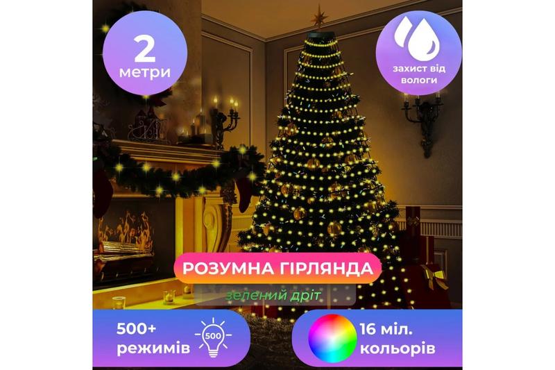 Гирлянда smart конский хвост (sfk-02) app bluetooth (usb) 10 нитей по 2м с пультом.о+