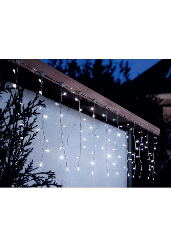Світлодіодна гірлянда штора стане ефектним елементом святкового або декоративного оформлення як у приміщенні, так і на вулиці. Оснащена 96 енергозберігаючими світлодіодами з холодним білим світлом, вона має 8 регульованих режимів освітлення для створення потрібної атмосфери. Завдяки 6-годинному таймеру з автоматичним щоденним повторенням, управління освітленням стає зручним і простим – достатньо підключити пристрій та натиснути кнопку на 3 секунди. Для контролю роботи таймера передбачений зелений індикатор. У комплекті: мережевий адаптер, монтажні присоски, гвинти. Захист від бризок води (IP44) дозволяє використовувати штору на відкритому повітрі. Довжина 176 см гірлянди + 10 м мережевий шнур. відстань між ланцюжками: приблизно 16 см. Виробник Німеччина.
