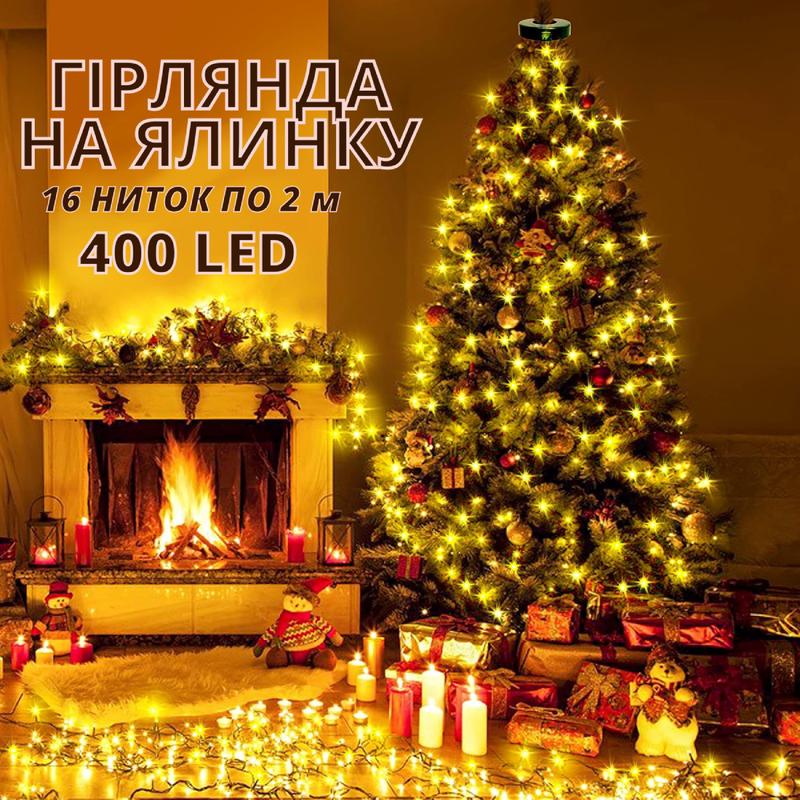 Светодиодная гирлянда snowera 400 led, с кольцом на елку, 16 нитей по 2 м, ip44, теплый бе...