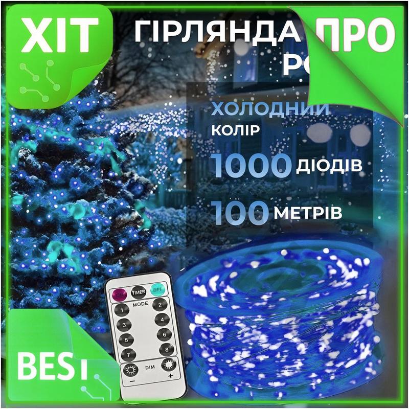 Ve гирлянда роса 100 метров new version 1000 led светодиодов синяя с пультом для декора ин...