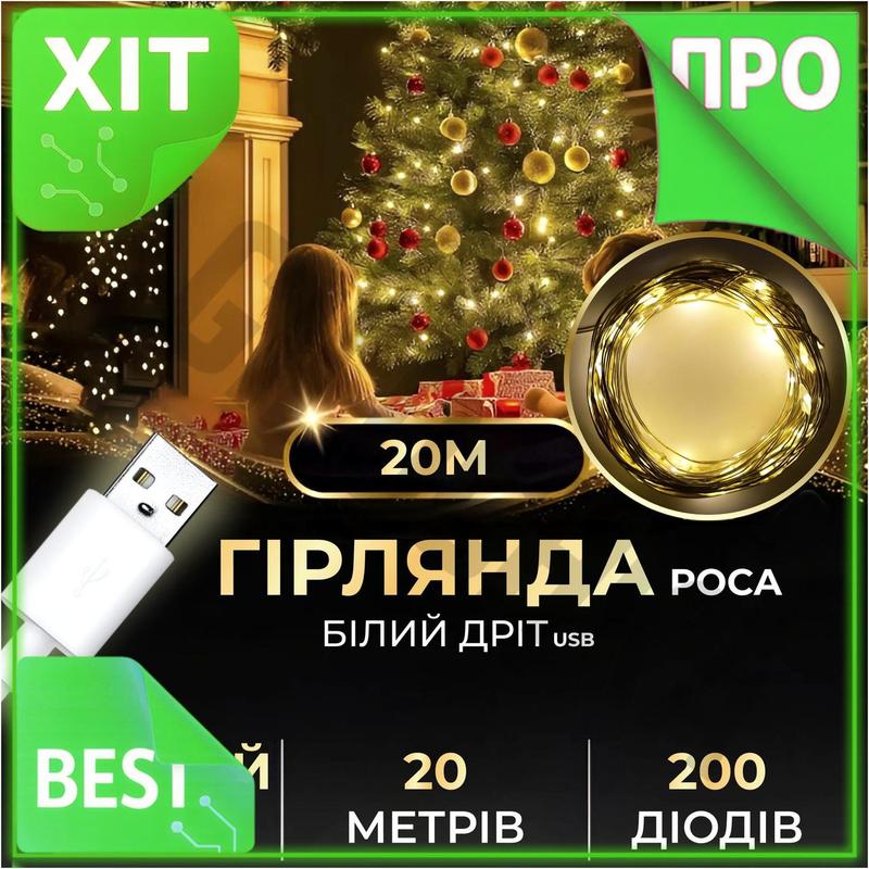Ve гирлянда роса 20 метров new version usb 200 led светодиодов для декора комнаты и улицы...