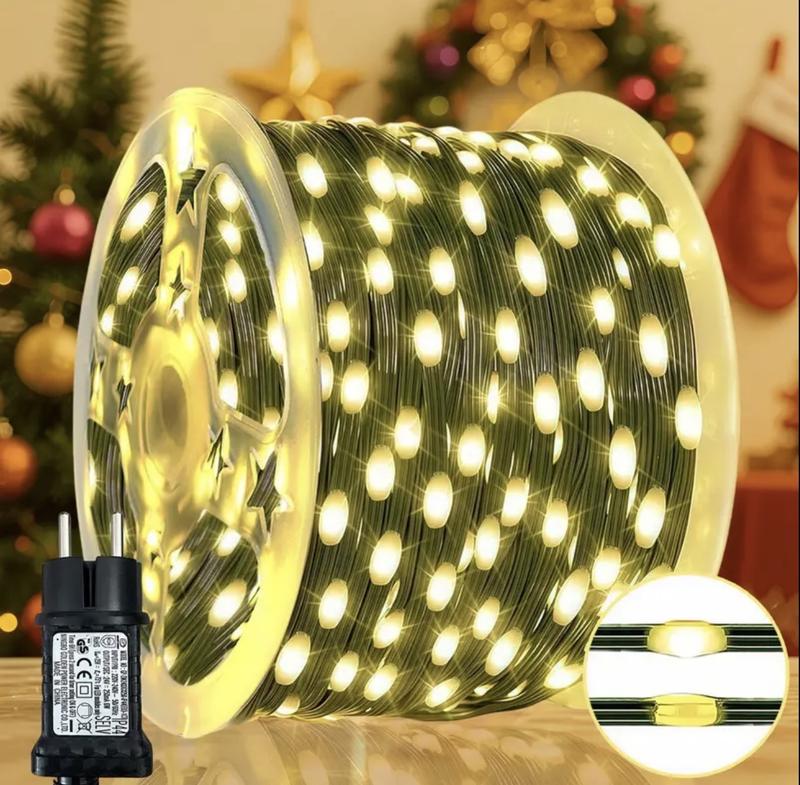 Особливості: • Довжина: 102 метри • Теплий білий світ • Придатна для внутрішнього та зовнішнього використання • Включає адаптер живлення • Компактна котушка для зберігання Ідеально підходить для декорування великих приміщень, фасадів будинків, святкових заходів та новорічного оформлення. Достатня довжина для створення ефектного освітлення на значній площі. Стан: новий, не використовувався.