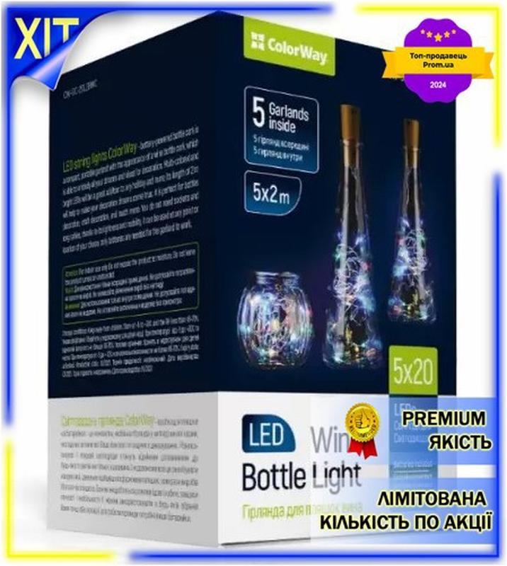 Dm светодиодная гирлянда colorway спецификация 2.2 20 led 2 м rgb для декора бутылок на ба...