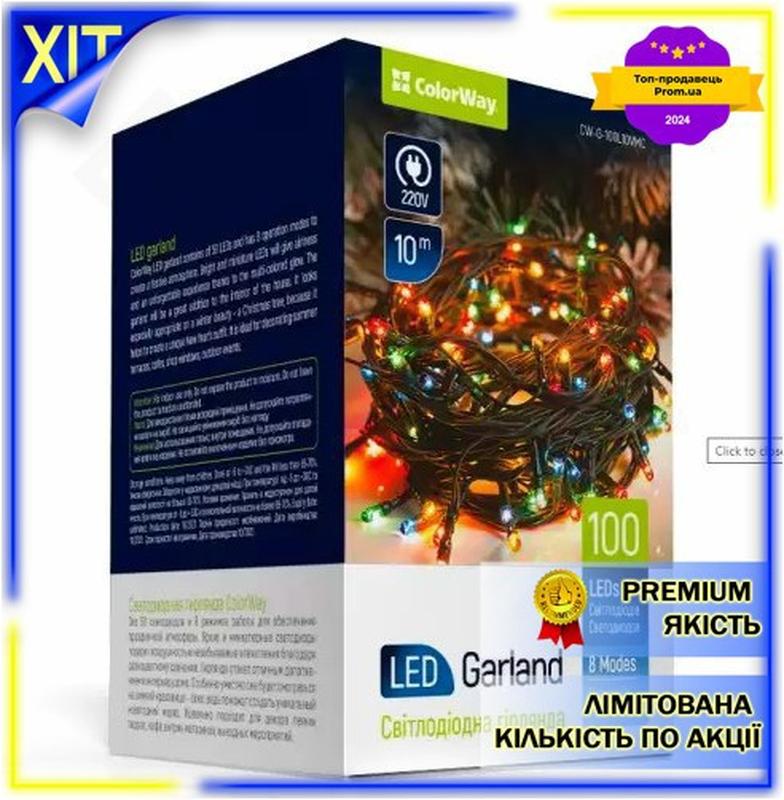 Dm светодиодная гирлянда colorway спецификация 2.2 100 led 10 м rgb для декора праздников...