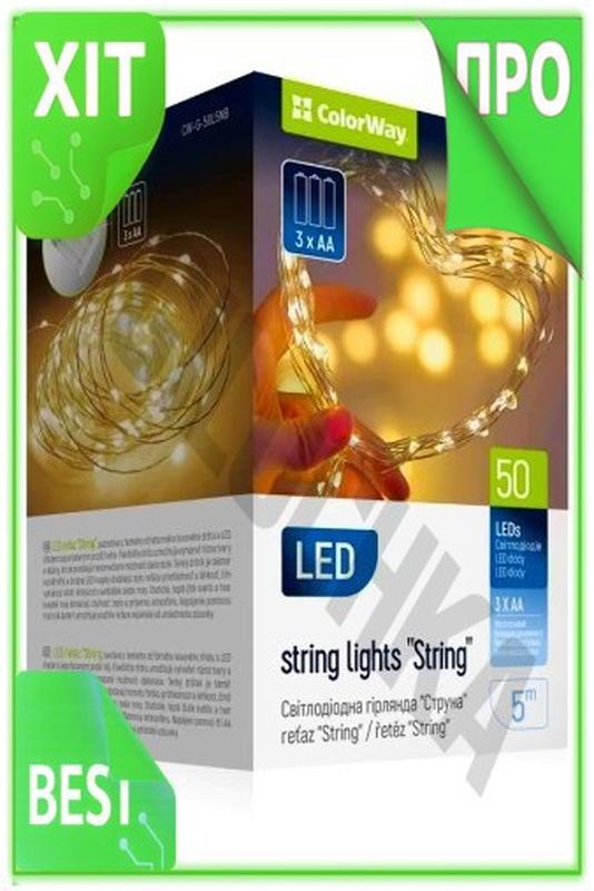 Ve светодиодная гирлянда colorway 50 new version led теплый белый 5 м для декорирования ин...