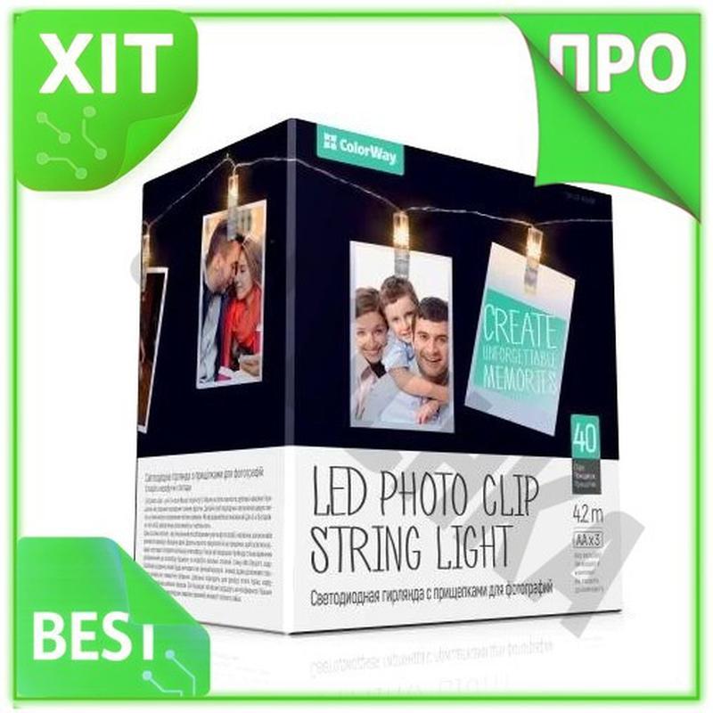 Ve гирлянда светодиодная colorway 40 new version led 4,2 м с прищепками желтая для декора...