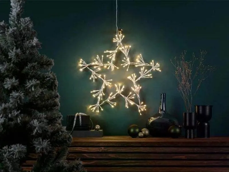Добавьте в свой дом уют с помощью светодиодной рождественской звезды LIVARNO home LED Christmas Star — светящейся мировой звезды, которая идеально подходит как для дома, так и для улицы. Благодаря 160 долговечным светодиодам с теплым белым светом вы мгновенно создадите уютную рождественскую атмосферу. Встроенный 6-летний таймер обеспечивает автоматическое включение и выключение звезды в один и тот же час ежедневно – удобно и энергоэффективно. Рождественская звезда защищена от брызг (IP44), поэтому ее можно безопасно повесить на улице, например, окно, фасад или балкон. Входящая в комплект присоска облегчает монтаж, а 5-метровый кабель позволяет свободно перемещать ее в любую точку дома. Функции: 160 прочных светодиодов с теплым белым светом (2700 К) Функция таймера: 6 часов включения, 18 часов выключения, автоповтор. Подходить для использования внутри и снаружи помещений (IP44) В комплект входит присоска, адаптер и руководство пользователя. Материал: металл и ПВХ Размеры: Ø 50 см | Длина кабеля: около 5 м Вес: около 510 г. Энергоэффективность и устойчивость Пустырь ваш дом сияет с помощью светодиодной рождественской звезды LIVARNO home – идеального сочетания стиля, качества и удобства.
