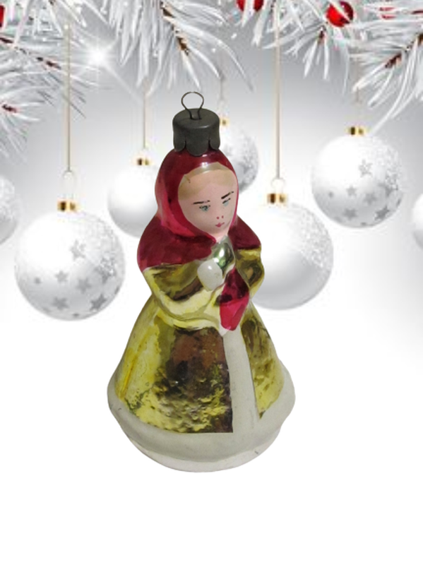Винтажная советская елочная игрушка "Настенька из сказки Морозко"- достойный экземпляр коллекции советских елочных игрушек и украшение елки в ретро стиле,представляет коллекционную ценность. Материал: стекло, амальгама, роспись, мет. подвес Производство: СССР 1950-60 гг. Состояние: полностью отражено на фото,есть скол под подвесом,соответствует возрасту Доставка:Новой почтой за счет покупателя Оплата:100% на карт-счет Приват Обмена,возврата нет! Смотрите все мои объявления!