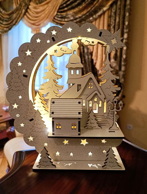 Можливе використання для новорічних композицій, як нічник. Різдвяний будиночок. Продається, як заготовка без підсвічування або з *** підсвіткою Заготовку, за бажанням ви можете прикрасити та обмотати гирляндою "роса" @*********** **************************************