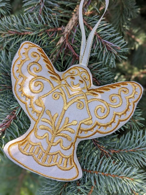 Ялинкова прикраса, подарунок на день Ангела чи просто декор для дому. лён, машинная вышивка золотой нитью Может быть в подарочной упаковке