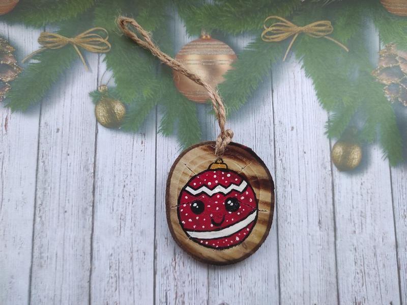 Новогодние украшения из срезов натурального дерева. Разных размеров 6х6,5 см и 10х6,5 см, можно использовать для украшения елки и интерьера комнаты, камина.