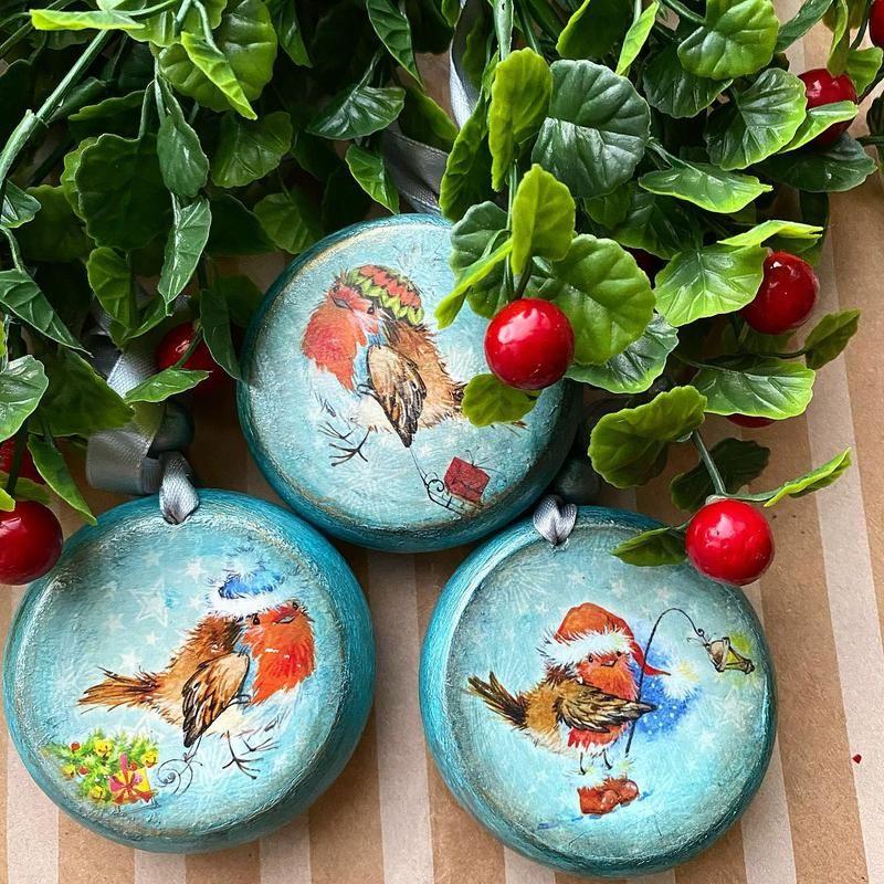 Новогодние подвески... Использованы безопасные материалы на водной основе Могут украсить елочку или интерьер дома или стать приятным подарком в новогодние праздники Материал - дерево бук Размер ок.7 см в диаметре