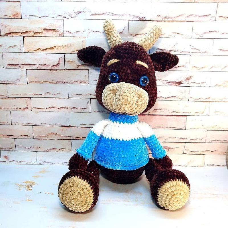 Бычок Петрик ⠀ Ростом 30 см. Цена 400.00грн. Плюшевый и мягкий. Символ Нового 2021 года🎄. Он абсолютно свободен и готов переезжать в новый дом. ⠀ Дополнительные характеристики: Материал : Нитки