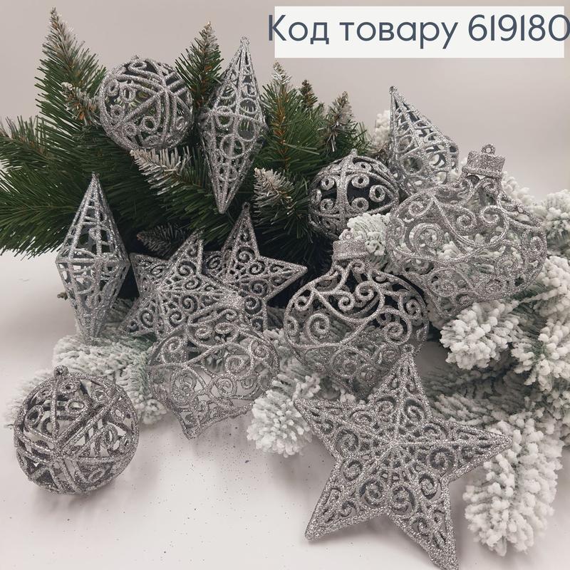 Набор игрушек серебро глитер дутые, 12шт/уп, украина